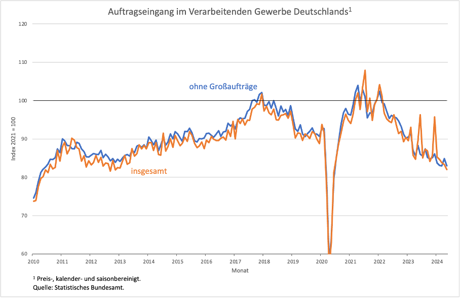 Ik observeer de Duitse economie al bijna 50 jaar met grote regelmaat. Wat er nu gebeurt, is in Duitsland in deze lange tijd nog nooit gebeurd: de economie verkeert in een lange en zware recessie (*i) maar politici willen dat niet toegeven. Ze ontkennen wat voor de hand ligt, omdat ze vermoeden dat er geen politieke constellatie te vinden is waarmee een consistent beleid ter bestrijding van de recessie kan worden uitgevoerd. Als gevolg daarvan hebben sommigen het over “de-industrialisatie”, anderen over een “tekort aan geschoolde arbeidskrachten” en derden – opnieuw – over de onwil van ontvangers van staatssteun om werk te aanvaarden.