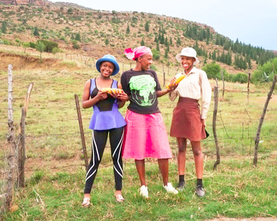 Maletsie Ramaema (52), met haar tienerdochter en een vriendin – Ha-Ramokoroane, Maseru, Lesotho.