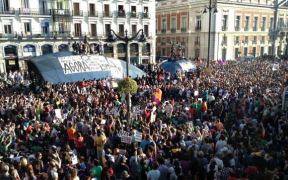 Ter herinnering: na afloop van een grote demonstratie tegen de soberheidspolitiek en de ontaarding van het politieke leven in Spanje, op 15 mei 2011 in Madrid, besloten honderden activisten het plein Puerta del Sol te bezetten om er de hele nacht te discussiëren. Dat was het begin van een burgerbeweging van pleinbezettingen – de ‘Indignados’ of de 15-M – die over heel Spanje navolging kreeg.
