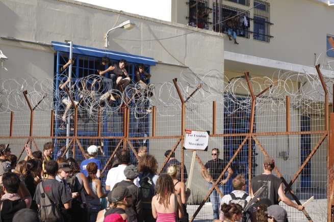 van het noborder camp – dat net buiten de hoofdstad Mytilini lag – direct aan de havenpromenade geopend werd. Hier konden toeristen zich over de omstandigheden van vluchtelingen op Lesbos informeren. Hier brachten ook (stille) ondersteuners die op het eiland woonden dekbedden en eten. Sommigen vertelden daar ook over hun eigen ervaringen met vluchtelingen. Het belangrijkste was echter het feit dat binnen enkele dagen een zelf-georganiseerd “ontvangstcentrum” opgezet werd, een ontmoetingspunt voor nieuwkomers (zonder papieren) en mensen die uit de gevangenis vrijgelaten waren; een punt om bij te komen, informatie uit te wisselen en gemeenschappelijk te handelen (2).