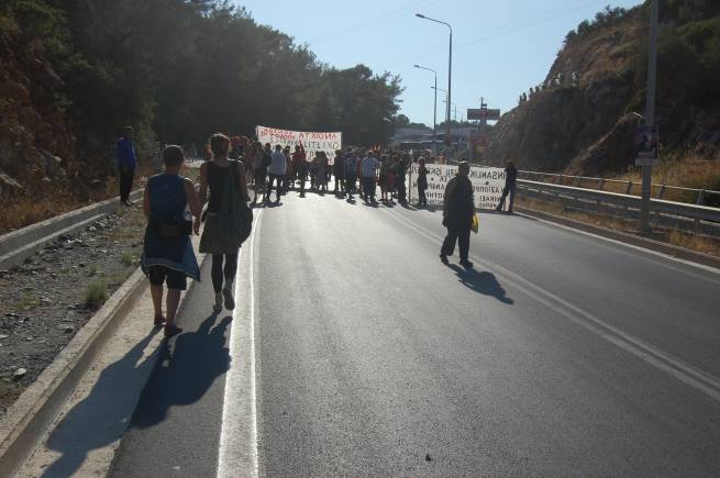 Dit debat was onlosmakelijk verbonden met vragen naar mogelijke actievormen – waarbij zich in de plenaire vergaderingen en werkgroepen verschillende niveaus de hele tijd vermengden. Ten eerste bestonden al in de aanloop naar het camp grote interne conflicten in Griekenland: anarchistische netwerken hadden bijvoorbeeld niet aan het camp deelgenomen omdat uit hun zicht een samenwerking met het ‘Netwerk voor politieke en sociale rechten’ (‘Diktio’) niet mogelijk was. Ten tweede verwachtten autonome en anarchistische groepen uit andere landen meer directe acties en voelden zich bij dergelijke voorstellen constant geblokkeerd. Inderdaad werden soms actie ideeën afgewezen, bijvoorbeeld omdat er geen vertrouwen bestond dat deze ook verantwoordelijk uitgevoerd zouden worden, of omdat andere (en deels dubieus overkomende) onderhandelingstactieken daardoor belemmerd zouden worden. Ten derde waren er enorme communicatieproblemen die ook met verschillende protestculturen (vaak niet transparante) beslissingsprocessen te maken hadden. Ten vierde maakte de mobiele eenheid die special uit Athene gehaald werd acties niet bepaald makkelijk. De politie demonstreerde namelijk meerdere malen, door absoluut onvoorspelbare charges met knuppels, dat vanuit hun kant een beschaafde omgang met civiele ongehoorzaamheid niet te verwachten was. Ten vijfde speelden verschillende evaluaties ook een rol – vooral betreffende het juiste fingerspitzengefühl voor de actuele situatie. Een goed voorbeeld was de (door andere campdeelnemers verhinderde) poging van een kleinere groep om vanuit een gemeenschappelijke demonstratie in de stadshaven naar een militante actie door te gaan – tegen duidelijke afspraken binnen de toch zeer heterogene werkgroep die de demonstratie voorbereid had en tegen vaak uitgesproken wensen van locale activisten in. Het blijft dus spijtig (en dit is aan alle deelnemers geadresseerd) dat het tijdens de campweek niet gelukt is de infrastructuur van Frontex, marechaussee & Co door autonome en goed voorbereide acties direct aan te pakken!