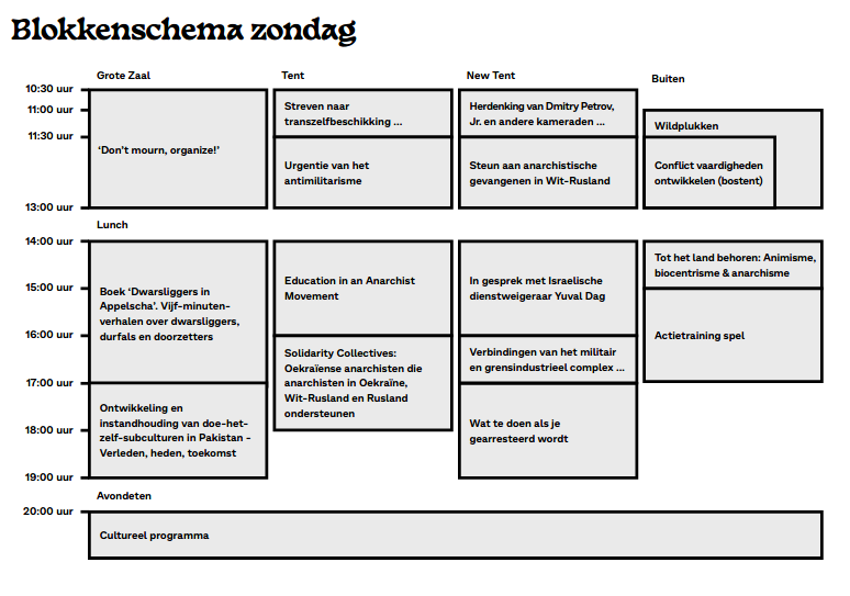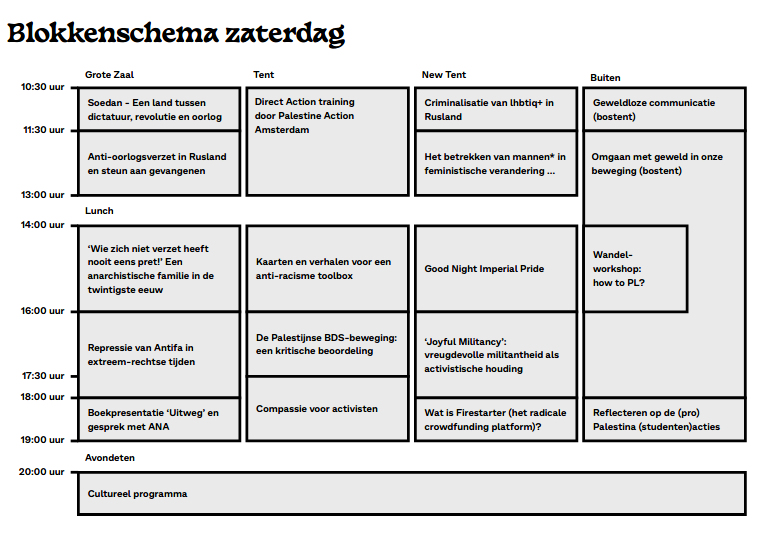 Het pinksterweekend, 17-19 mei dit jaar, is traditioneel het moment voor anarchistische kamperen en leren organiseren in Appelscha. Hierbij het voorlopige programma. Het is trouwens de 100e keer dat dit gebeurt.