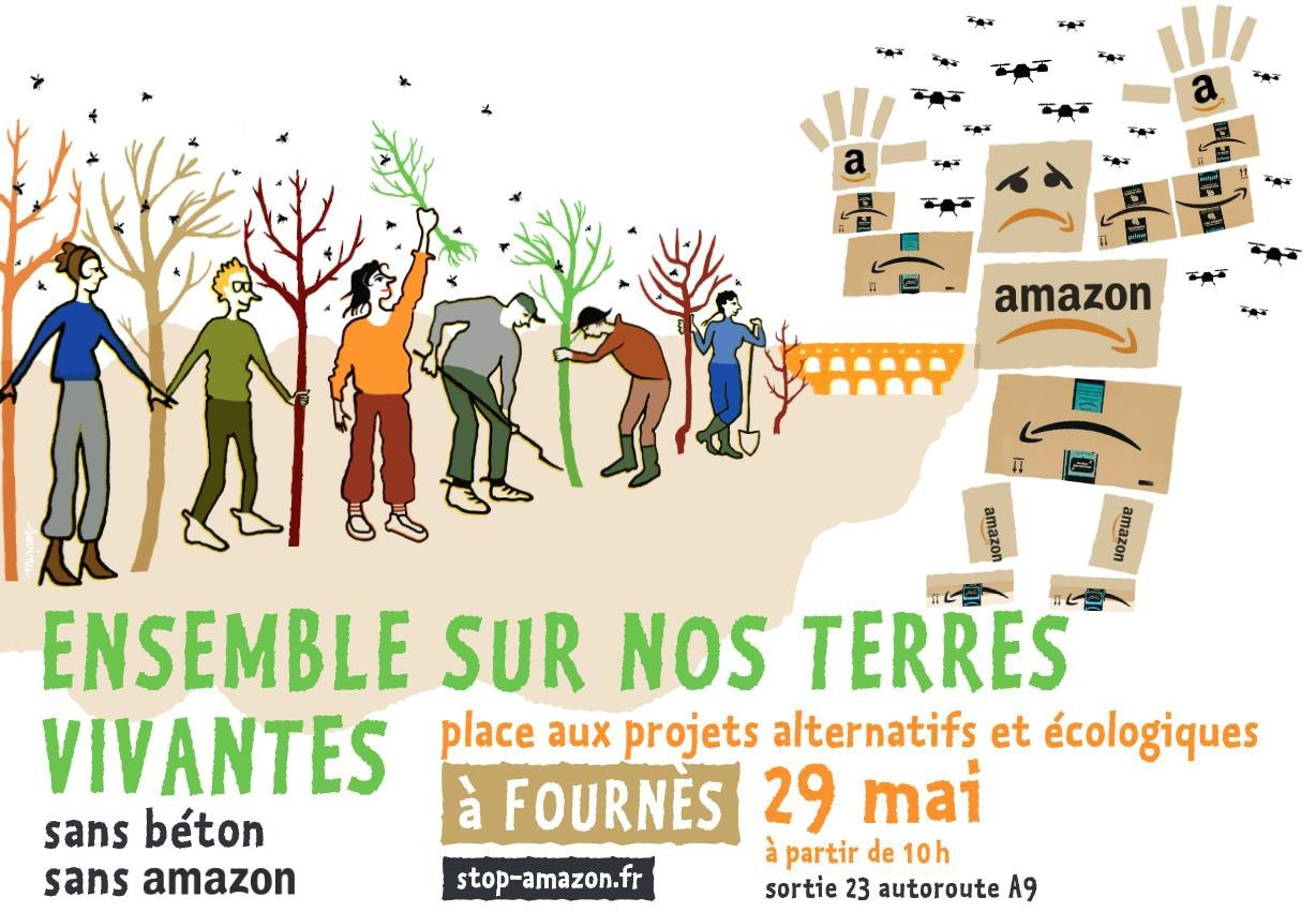 Overigens is op beide industrieterreinen het bouwwerk nog niet af. In Frankrijk wordt bij elke nieuw geplande distributiecentrum van Amazon actie gevoerd en geprobeerd de bouw te stoppen. (Zie eerder bericht daarover hier, en aankondiging komende acties hier). De leus is daar: voor een toekomst zonder beton en zonder Amazon.