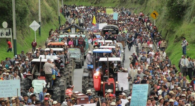 Vandaag was de tiende dag van wat hier de “nationale agrarische staking” wordt genoemd. Bij deze acties zijn honderdduizenden mensen betrokken. In meer dan 25 van de 32 departementen van het land zijn acties gaande. De acties bestaan uit barricades, manifestaties, sit inns, stakingen en, wat op dit moment het grootste drukmiddel lijkt, de blokkade van wegen. Op 66 plaatsen in het land worden op dit moment wegen geblokkeerd, inclusief hoofdwegen. Het leger reageert door nog open knooppunten te militariseren. De laatste dagen slaat het steeds meer over naar de steden. In bijna alle steden van het land vinden nu dagelijks manifestaties plaats.