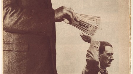 (Afbeelding: uitsnede uit Millionen Stehen Hinter Mir van John Heartfield)