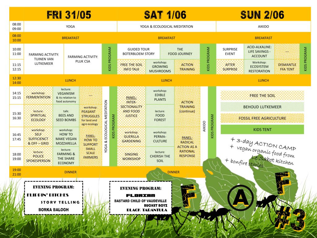 Ja, het is waar dat we dit jaar de derde editie van ons Food Autonomy Festival (FAF) zullen organiseren! En dat niet alleen. Omdat de laatste twee jaar zo geweldig waren, breiden we de FAF dit jaar uit van een eendaags evenement naar een driedaags agro-actiekamp! Het festival vindt plaats ter ondersteuning van de bedreigde biologische boerderij Boterbloem / Lutkemeerpolder, tegen het door SADC/Schiphol geplande bedrijventerrein en de betonnen en plastic winstgedreven bedrijvenwereld die zulke vernietiging nodig heeft.