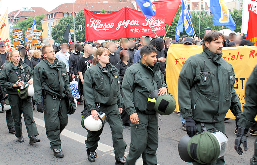In Berlijn waren tussen de 20.000 en 35.000 mensen op de been, afhankelijk van welke nieuwsbron je neemt. Naast veel demonstranten was er ook een overdaad aan politie die al snel overging tot het aanvallen van delen van de demonstratie. Met name het gedeelte waar het anti-kapitalistische blok zat, werd voortdurend bestormd door hardhandige groepen robocops die willekeurig spandoeken en vlaggen afpakten en mensen in elkaar sloegen en peppersprayden.