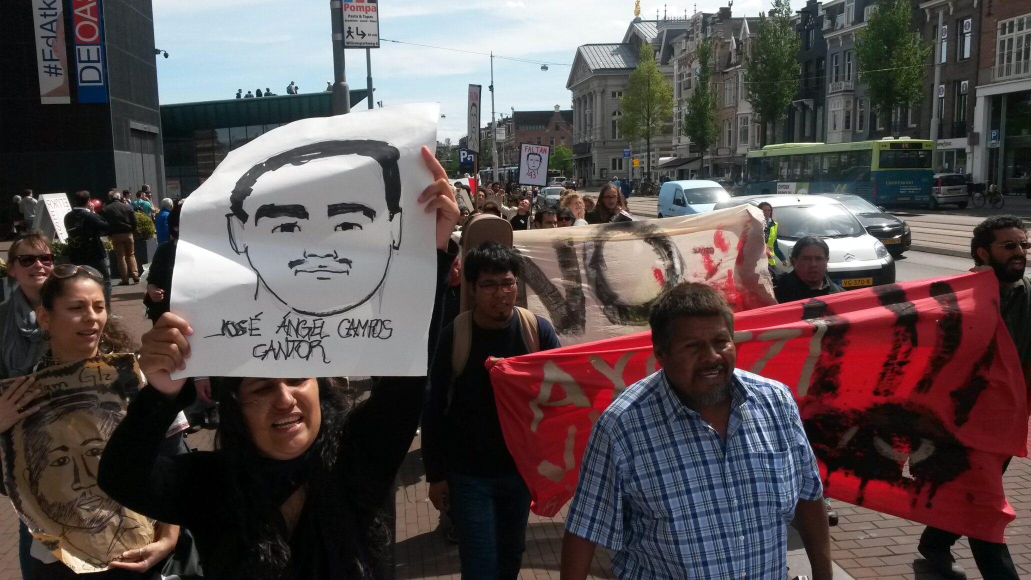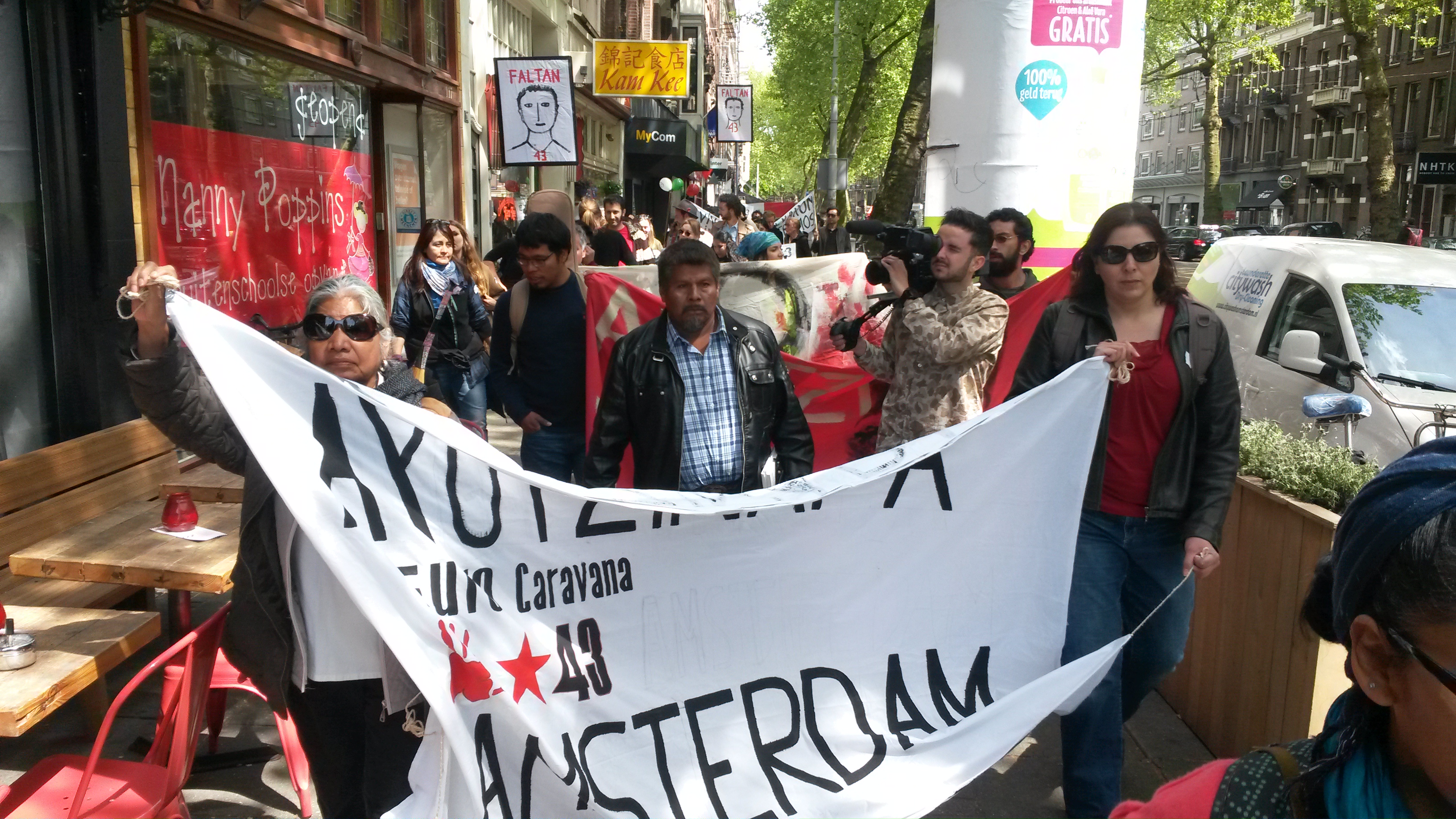 De demonstratie in Amsterdam werd georganiseerd door Eurocaravana43, afdeling Amsterdam. Hoofdzakelijk gedragen door Mexicanen in Nederland en met flyers en via facebook georganiseerd. Het was de afsluitende activiteit van een tour door Europa om aandacht voor de zaak te vragen, en steun voor de strijd voor opheldering.