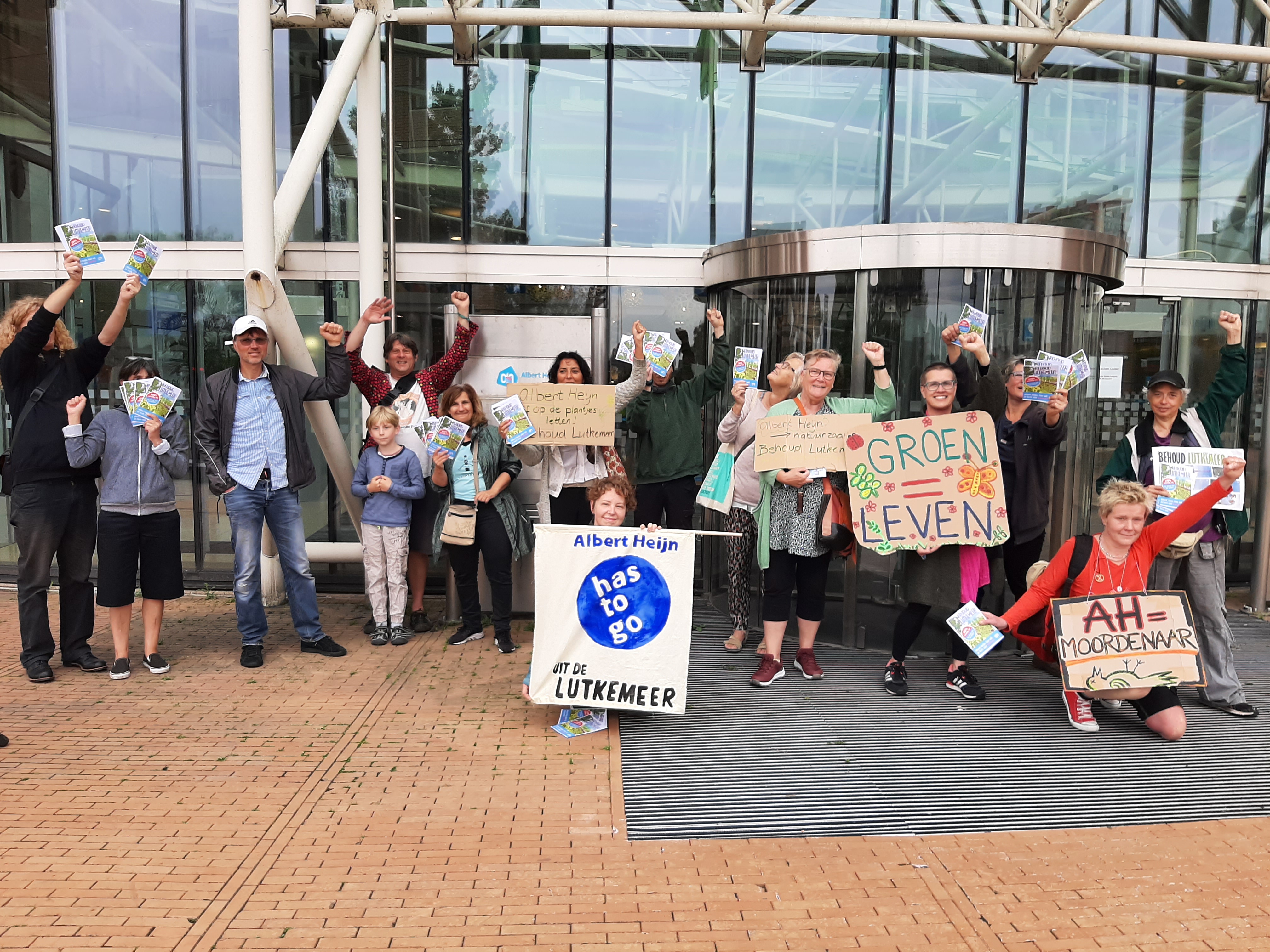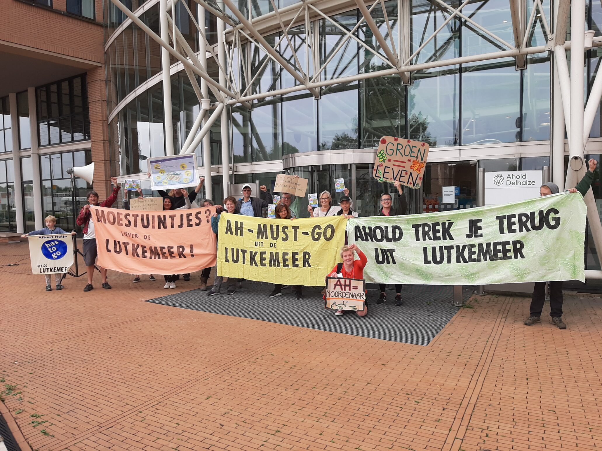 Vandaag, op vrijdag 25 juni, stonden we voor de tweede keer letterlijk voor de deur bij Ahold in Zaandam. Met de eis dat ze stoppen met het plan om een distributiecentrum te bouwen in onze kostbare Lutkemeerpolder. Het bezoek was aangekondigd met een open brief en we werden niet binnen gelaten.