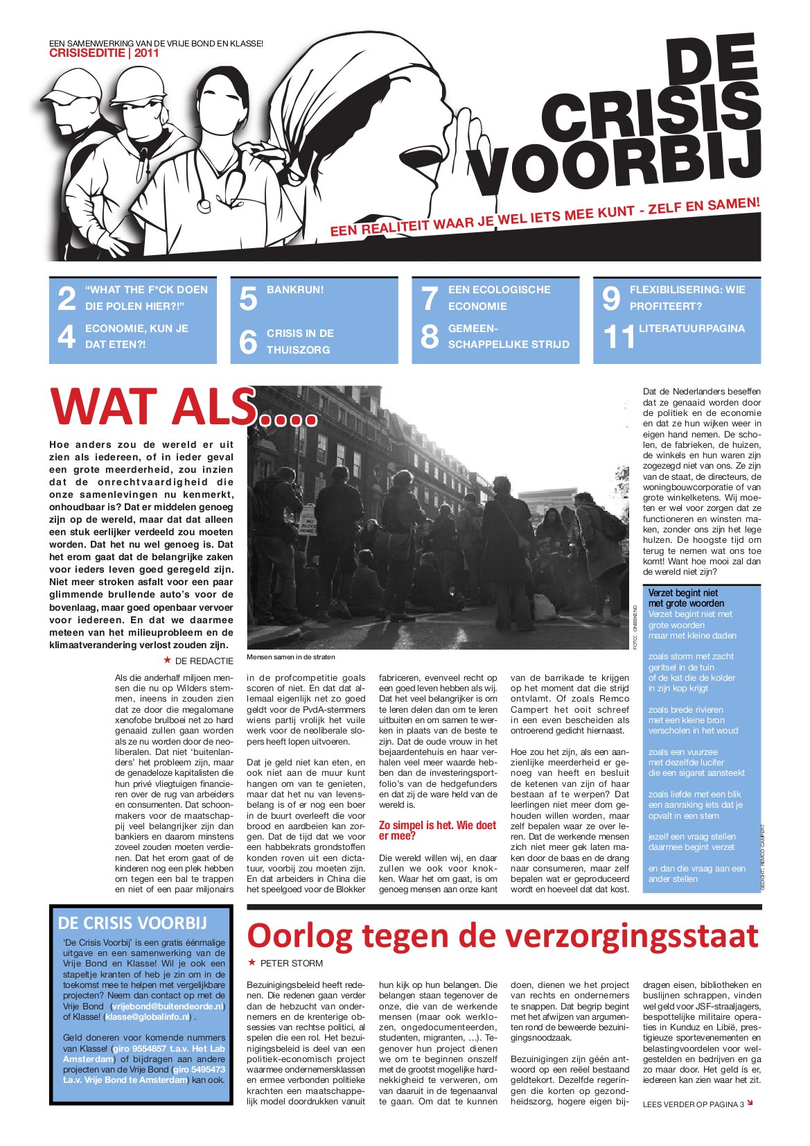 Naar aanleiding van Prinsjesdag brengen Klasse! en de Vrije Bond samen een gratis crisiskrant uit, met als titel: De Crisis Voorbij. De krant zal vanaf maandag 19 september in heel het land verspreid worden. De krant telt – inclusief een uitneembare poster – 16 pagina’s en wordt in een oplage van 20.000 exemplaren gratis verspreid.
