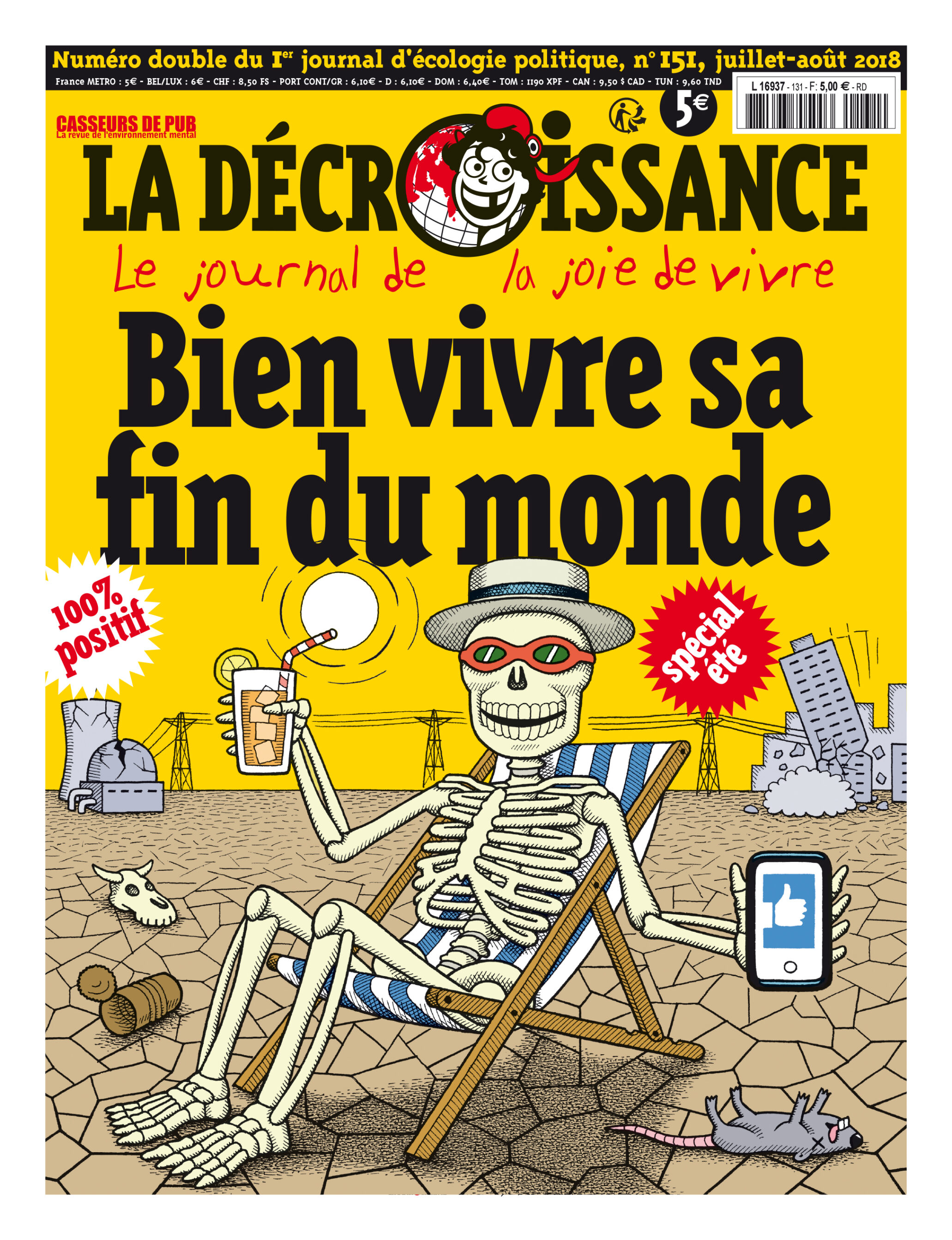 Terwijl we bijna letterlijk omkomen van de hitte omdat deze aardbol door een op alle fronten falend kapitalistysch systeem in een snelkookpan is veranderd (ik dacht ik begin deze column luchtig) is de special van het Franse ecologische tijdschrift La Décroissance toepasselijk gewijd aan het einde der tijden. Dat doen ze op de hun typerende manier: veel grappen en grollen en uithalen naar andere partijen, maar ondertussen bloedserieus.