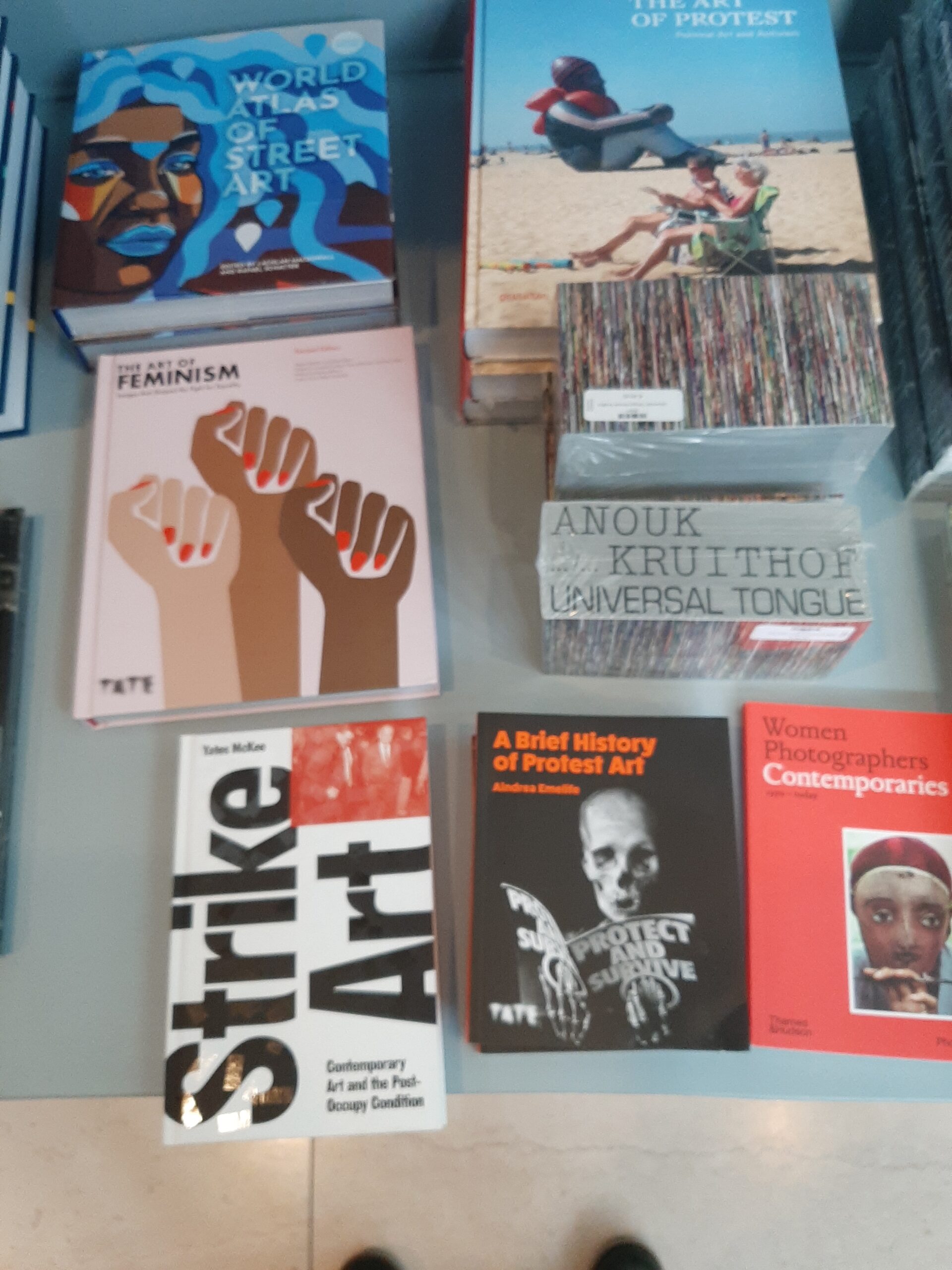 Geen catalogus dus, maar beneden bij de kassa tafels met boeken die er over gaan. Zoals het prachtige The Art of Protest.