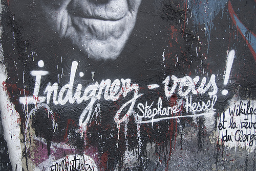 Stephane Hessel is natuurlijk de ruim 90-jarige verzetsstrijder die het boekje ‘Indingnez Vous’ schreef (in het Nederlands vertaald als Neem het Niet) dat een enorme bestseller werd, eerst in Frankrijk en vervolgens wereldwijd.