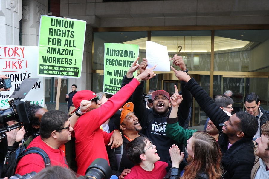 Achtergrond De arbeid(st)ers van Amazon behalen historische overwinning Verrassend resultaat met klassieke ‘van onderop’ organisatie… Luis Feliz Leon/solidariteit 11 april, 2022 · 8 min leestijd