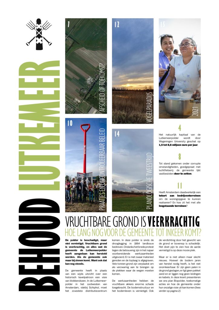 Nieuws 8 mei Lutkemeer: Laat van Uitstel Afstel komen! De Lutkemeerpolder is een eeuwe oud stuk landbouwgrond van 42 hectare bij Osdorp aan de rand van Amsterdam. Het stadsbestuur wil op deze plek een… Aankondiging 4 mei, 2021 · 2 min leestijd