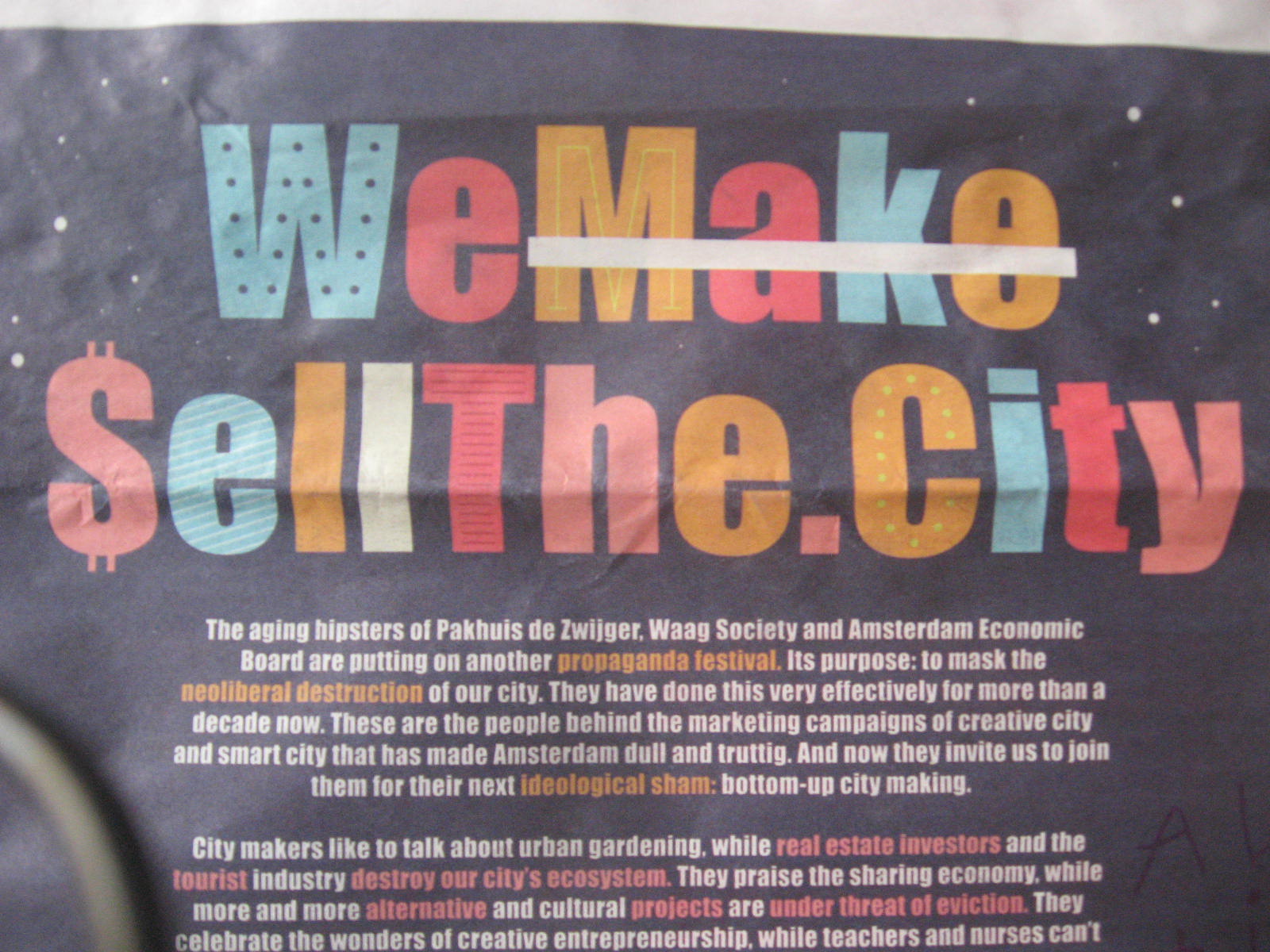 Recensies enzo WeMakeCity? WeMake$ellThe.City. Deze manifest-achtige tekst stond op de voorpagina van het gratis maandblad Amsterdam Alternative. Maar de tekst was vreemd genoeg niet op hun website (of… Amsterdam Alternative/City Makers Liberation Army 10 mei, 2018 · 4 min leestijd