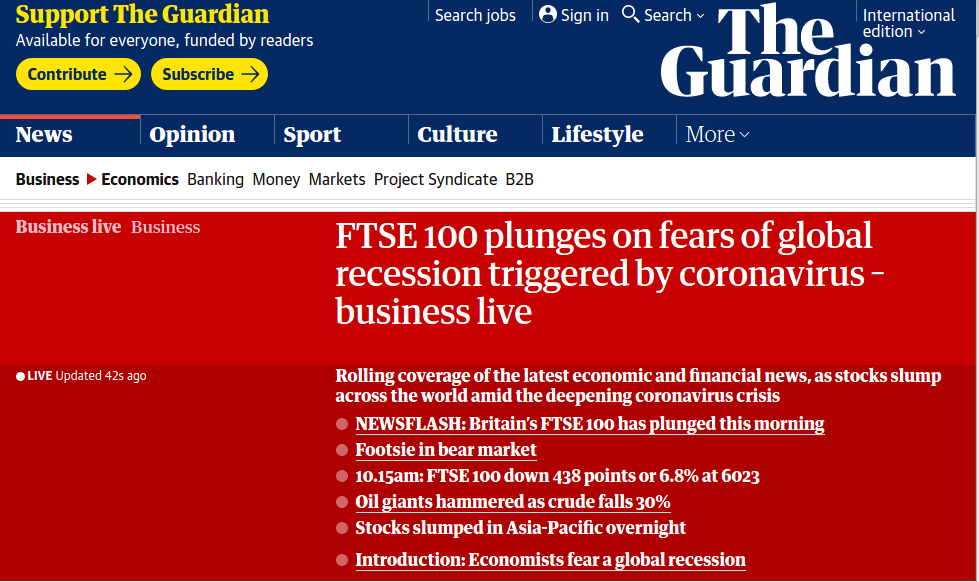 Nieuws Dreigende economische crisis doet beurskoersen crashen Na een week van dalende beurskoersen, gingen ze deze maandag pas echt naar de kelder. Financiele media hebben het over een ‘bloedbad’ op de beurzen,… Kees Hudig/globalinfo 9 maart, 2020 · 6 min leestijd