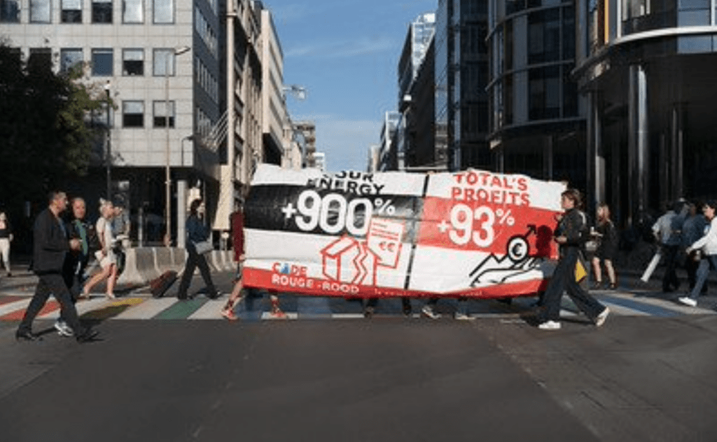 Nieuws Code Rood bereidt zich voor op burgerlijke ongehoorzaamheid tegen TotalEnergies Vanochtend (6 september 2022) ontrolden activisten een spandoek aan een benzinestation van TotalEnergies in centrum Brussel. Met de actie willen ze wijzen op de buitensporige… Code Rood/DeWereldMorgen 12 september, 2022 · 4 min leestijd