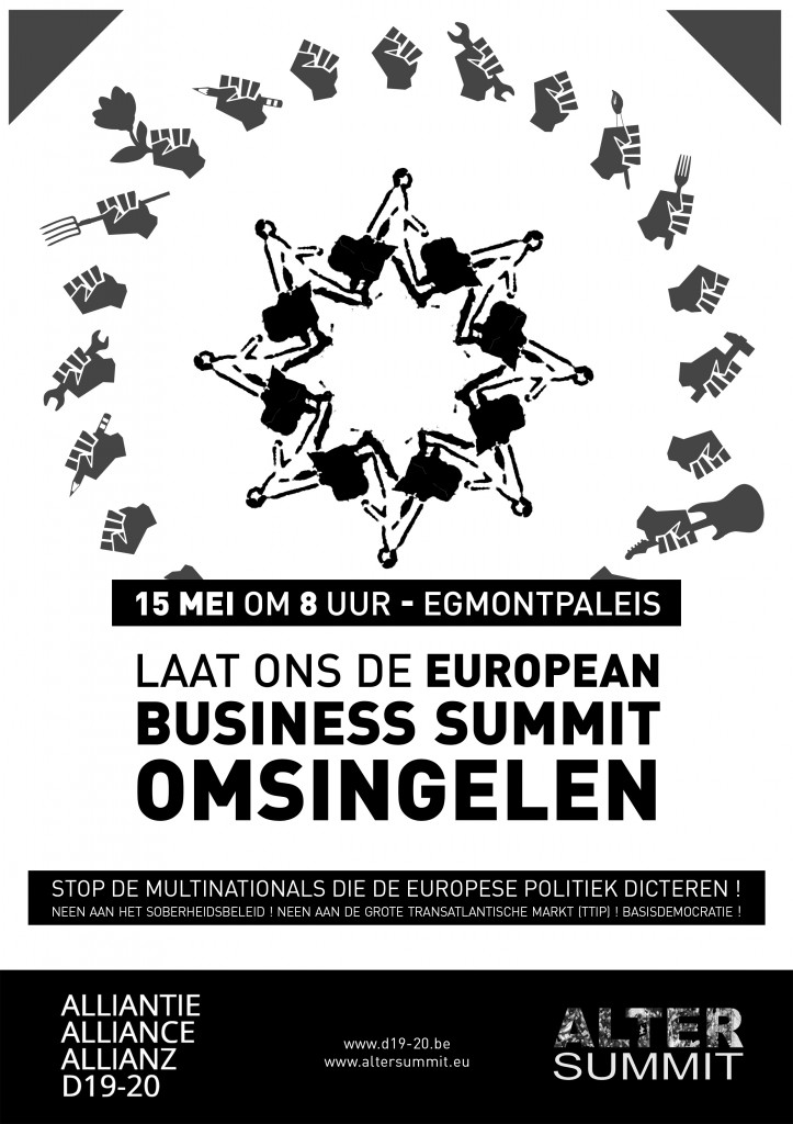 Nieuws 15 mei Brussel: Omsingeling European Business Summit Laat ons de European Business Summit omsingelen! {youtube}MIMB6NsQMEQ{/youtube} Stop de multinationals die de Europese politiek dicteren Neen aan het soberheidsbeleid*. Neen aan het Transatlantisch Verdrag… Aankondiging D 19-20 8 april, 2014 · 2 min leestijd