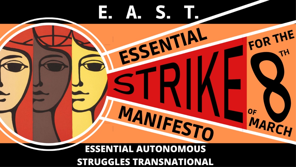 Nieuws Manifest voor Essentiële Staking op 8 maart Wij zijn de vrouwen die van essentieel belang zijn om de hele wereld van de pandemie te genezen. Wij doen essentieel werk en toch bevinden… EAST/Transnational Strike Platform 9 februari, 2021 · 9 min leestijd