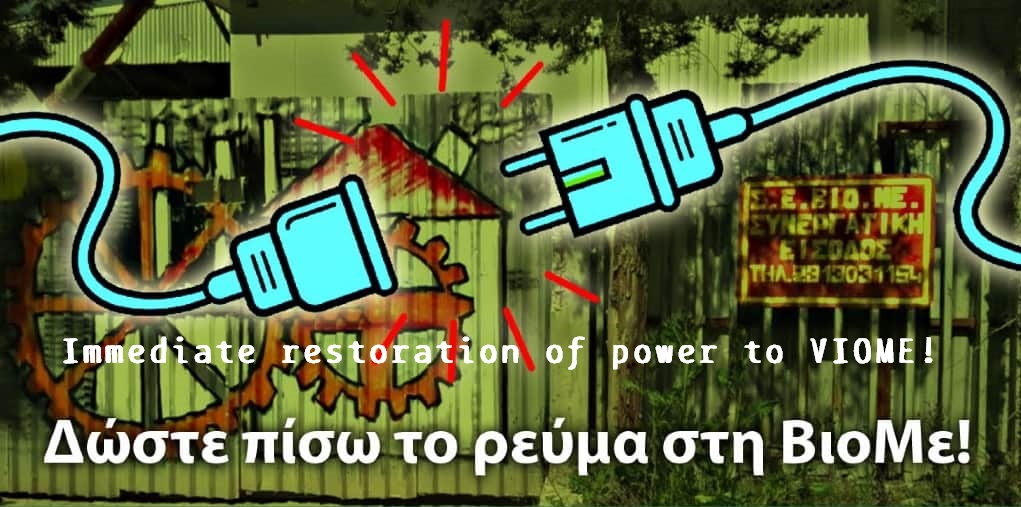 Nieuws Sluit VIOME weer aan op elektriciteitsnet – nu! Een bericht van de werkers van VIOME. De Griekse overheid heeft de lockdown gebruikt om VIOME af te snijden van het elektriciteitsnet. Maar de solidariteit… Arbeiders VIOME 6 april, 2020 · 4 min leestijd