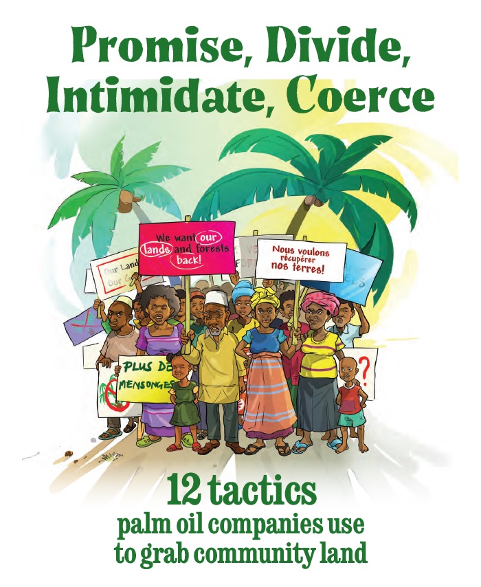 Nieuws Brochure: 12 truucs die palmoliebedrijven gebruiken om gemeenschappelijk land af te pakken Het boekje “Promise, Divide, Intimidate and Coerce: 12 tactics palm oil companies use to grab community land” (12 tactieken die palmoliemaatschappijen gebruiken om gemeenschappelijk land… WRM/Grain 5 april, 2019 · 3 min leestijd