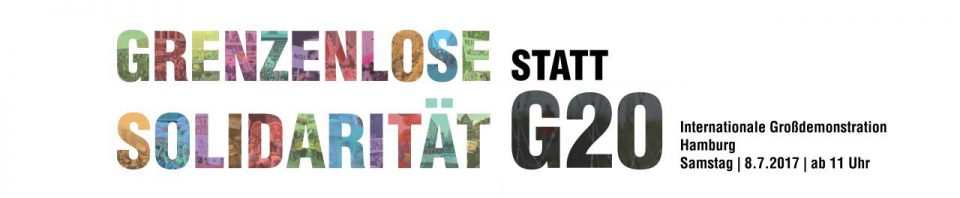 Nieuws Oproep voor grote demonstratie tegen de G20-top op zaterdag 8 juli in Hamburg Solidariteit zonder grenzen in plaats van G20!… Coalitie tegen G20 28 maart, 2017 · 5 min leestijd