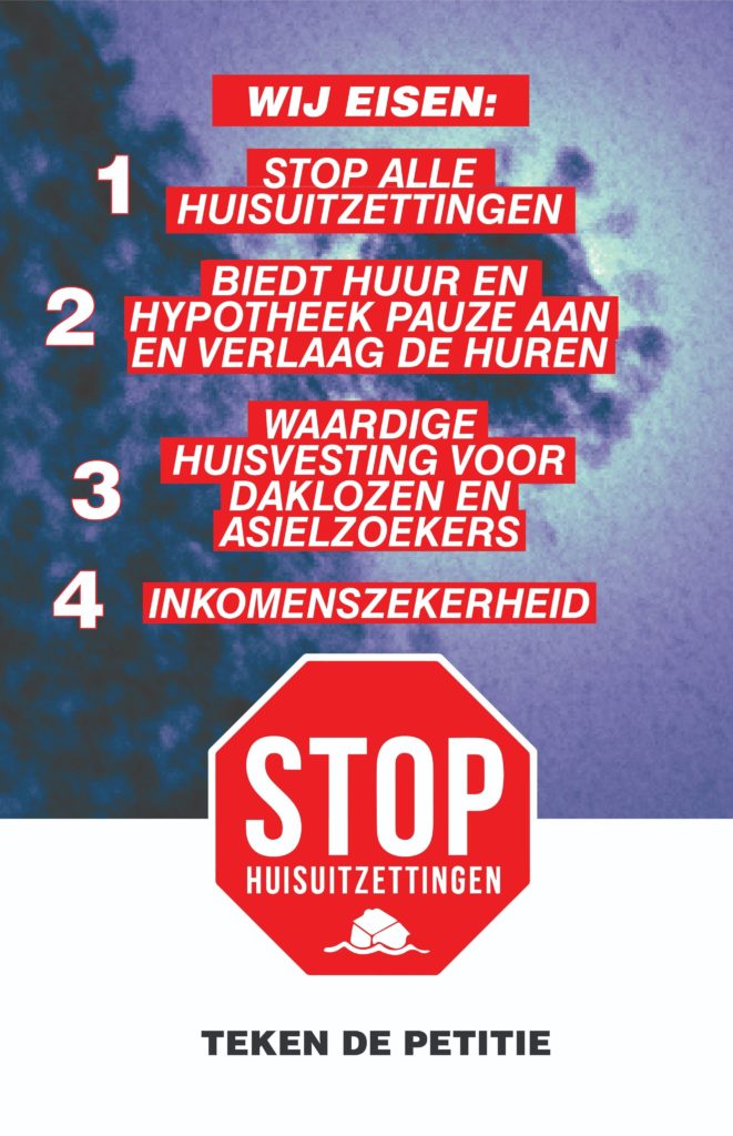 Nieuws Geen Coronahuisuitzettingen! Lancering petitie tegen Coronahuisuitzettingen! In een tijd waarin de regering de corona-pandemie probeert te beheersen (met grote gevolgen voor de levens van mensen en de… Bond Precaire Woonvormen 21 maart, 2020 · 3 min leestijd