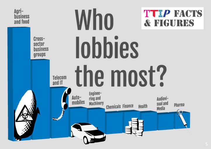 Nieuws Agribusiness grootste lobbyist voor TTIP Agribusiness is de grootste lobbyist voor de handelsovereenkomst tussen EU en VS, blijkt uit nieuw onderzoekVraag je je af welke bedrijven het hardst druk zetten… CEO/vert.globalinfo 10 juli, 2014 · 2 min leestijd