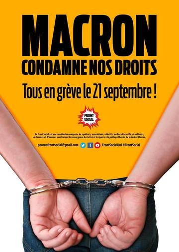 Achtergrond Tegen Macron en de Loi Travail XXL! Laten we staken/toeslaan in Frankrijk en Europa! Wij publiceren hier een verklaring die is uitgebracht door de Union Syndicale Solidaires SUD Commerce & Services ter gelegenheid van de algemene landelijke staking die… Door de vakbond SUD COMMERCES & SERVICES 25 september, 2017 · 11 min leestijd