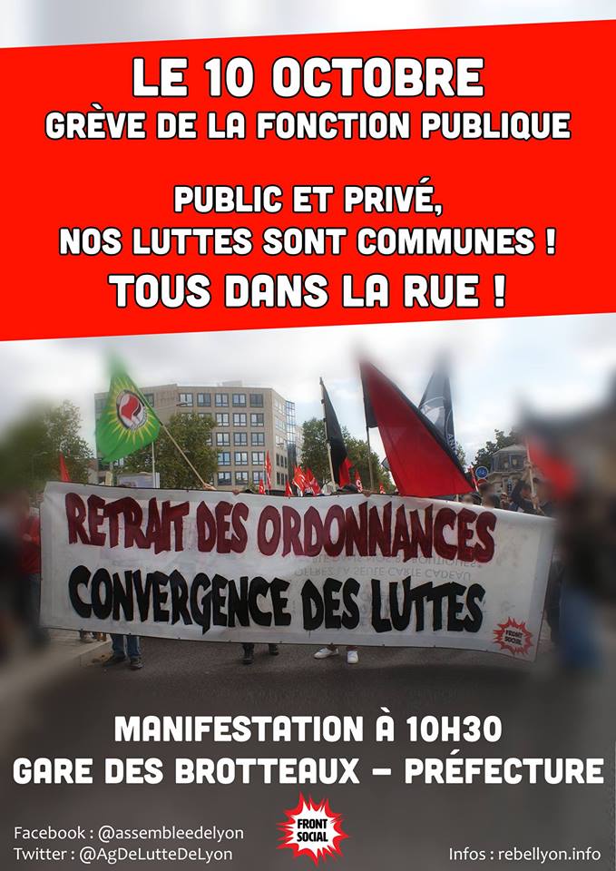 Nieuws Frankrijk 10 oktober : blokkades en manifestaties tegen de ‘ordonnances’ Op 10 oktober is de volgende stakingsdag in Frankrijk. Deze keer hebben alle vakbonden opgeroepen uit de publieke sector. Hieronder de oproep van scholieren, om… GLOBALINFO 9 oktober, 2017 · 4 min leestijd