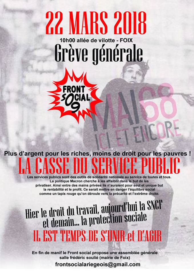 Nieuws Mobilisaties in Frankrijk op 16-18 November Op 16, 17 en 18 november staan er weer grote mobilisaties tegen Macron en zijn arbeidswethervormingen gepland. Voor de 16e november roepen verschillende vakbonden (FO,… Verklaring Front Social 8 november, 2017 · 3 min leestijd