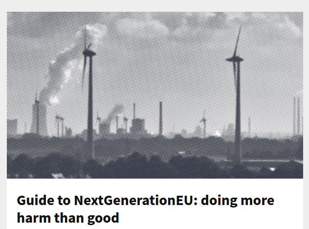 Nieuws Gids voor NextGenerationEU: meer kwaad dan goed doen Een analyse van de Europese herstel- en weerbaarheidsfondsen: kansen, tekortkomingen en voorstellen. De aanbevelingen zijn op de Spaanse overheid gericht, maar gelden net zo goed… Observatori del Deute en la Globalització (ODG) 26 maart, 2021 · 4 min leestijd